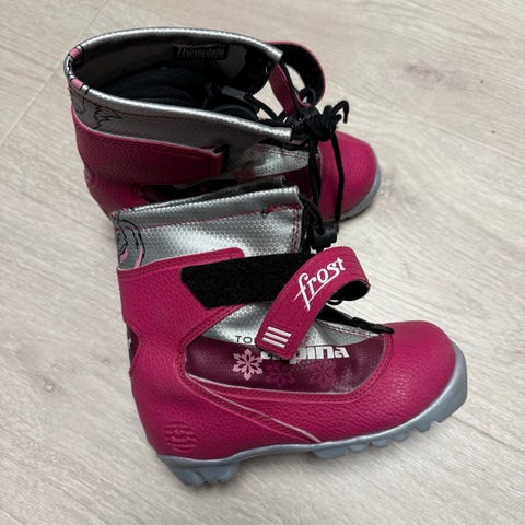 Eneste paret som har holdt jenta varm nok på føttene en vinterdag til at hun klarte å ha det gøy på ski.