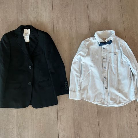 Hvit Fin skjorte str 92 og dressjakke str 98. Selges samlet kr 180 eller kr 100 per del. Pent og lite brukt.