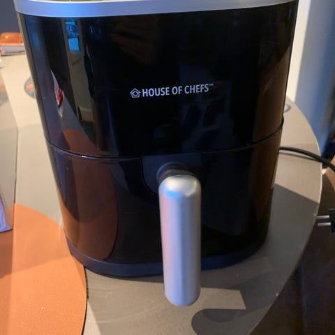 Airfryer med ovn som har Rustfritt stål og svart design.