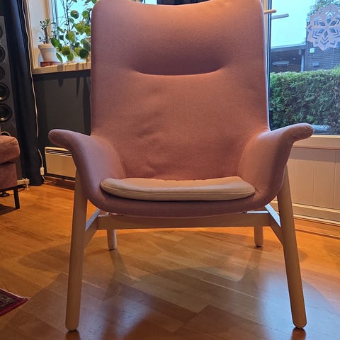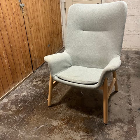 Grå Vedbo lenestol fra IKEA.