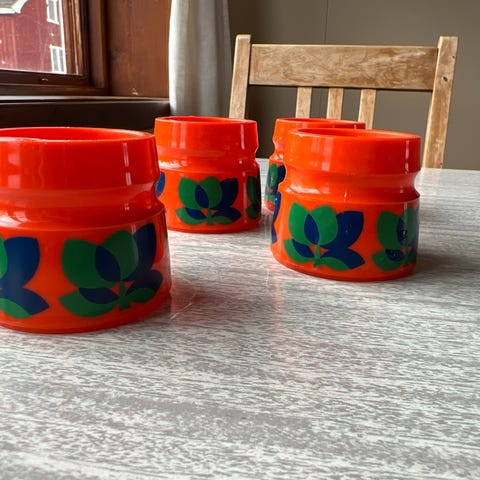 Vurderer å selge 8 vintage eggeglass fra 70 tallet.