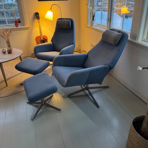 Pen brukt 2 seter, flekk som vist på bilde, kan muligens vaskes bort med møbel vask.