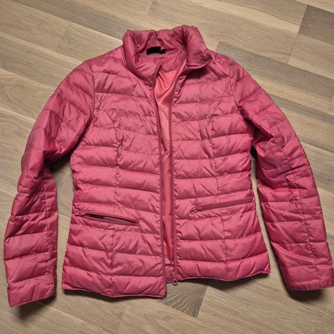 Tynn dunjakke fra Solemate (inneholder dun og fjær). Fin mørk olivengrønn fagre. Str. L. Lite bruk. Selges kr. 300,-.
