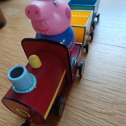 Lekehus med figurer, isbil, interaktiv telefon og gulvpuslespill.
