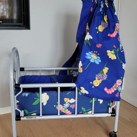 Selger en komplett dukkeseng. Lengde 52 cm. Bredde 36 cm, høyde 29 cm