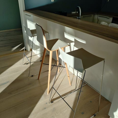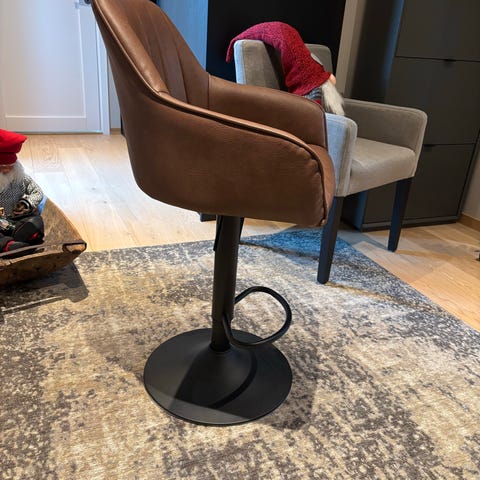 3 hele og pene barstoler i svart «skinn trekk» selges.