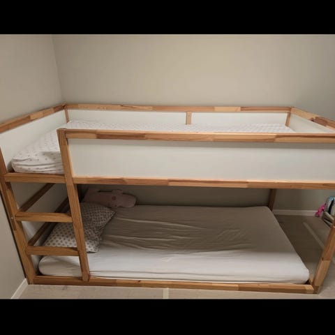 Fint brukt seng fra Ikea selges. Kan brukes på to ulike måter, har vært veldig populært å bytte mellom høy og lav seng.