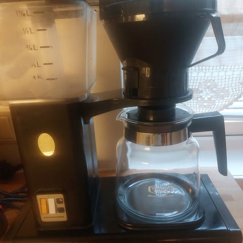 brødrister og vannkoker i svart farge. Brødristeren har to brødristerspor. Vannkokeren har glasskanne med svart håndtak og lokk. Fungerer som standard, vi trenger ikke mer fordi vi kjøpte nye