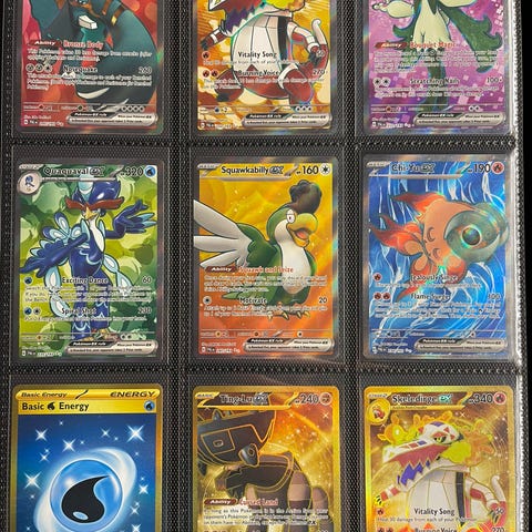 Pokémon samlekort i pakker. Hver pakke inneholder 60 ulike kort (milde makter for en jobb jeg har hatt med å sortere alt dette), og dette er en salig blanding av kort fra settene Scarlet & Violet Base Set, Paldean Fates, Obsidian Flames, Twilight Masquerade, Prismatic Evolutions, Paradox Rift, White Flare, Black Bolt, Shrouded Fable, Temporal Forces, Destined Rivals, 151, Paldea Evolved, Surging Sparks, Stellar Crown og Journey Together. Engelske Common/uncommon, men ingen hits eller glins. Et strålende tilbud til den som ønsker å starte en Pokémon-samling fra disse settene.