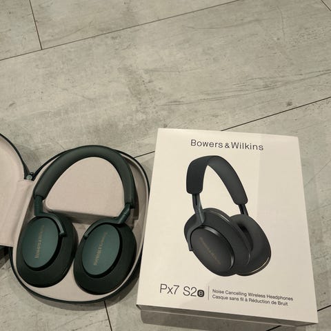 Bowers & Wilkins PX7 S2 hodetelefoner med aktiv støydemping. Leveres med beskyttende etui og ladekabel. Trådløse over-ear hodetelefoner designet for høy lydkvalitet.