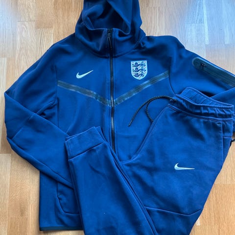 Nike England treningsbukser i blå farge med Dri-FIT teknologi. Buksen har elastisk midje med snøring, glidelåslommer og elastiske mansjetter ved anklene. Materialet er designet for å transportere bort svette og gi komfort under trening.