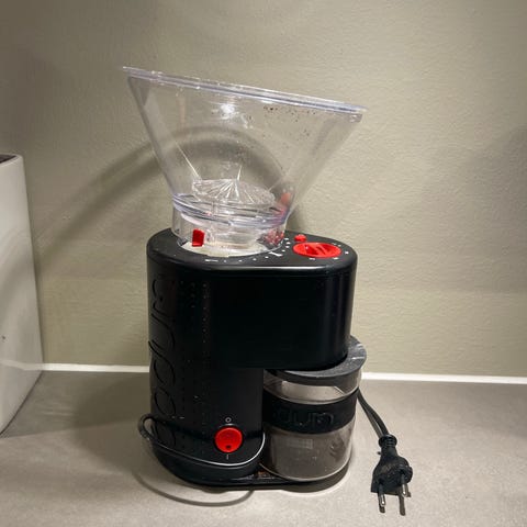 Bosch kaffekvern i svart farge. Elektrisk kaffekvern med knivblad for kverning av kaffebønner. Kompakt design egnet for kjøkkenbruk.