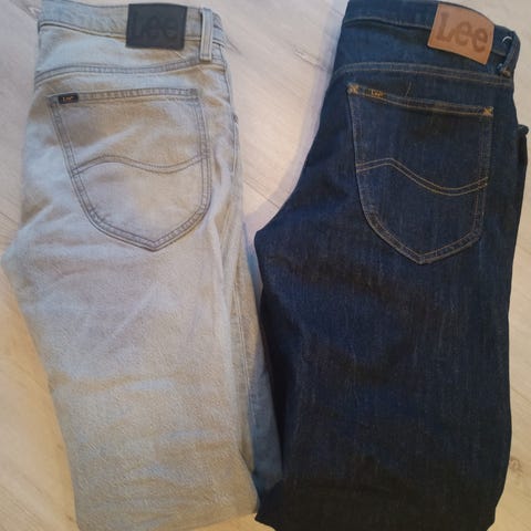 Begge er modell 101z 21 oz, den klassiske modellen til Lee i en nokså tung utgave. Fås ikke kjøpt her til lands. Begge har stoff som er vevd i Japan.