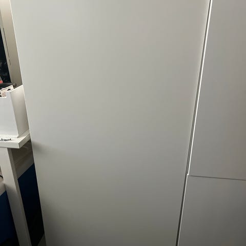 Pent brukt Bestå skap med to glassdører og 1 hvit dør- Glasshyller i de to øveste deler og hvit hylle i nedre del. Må hentes!
