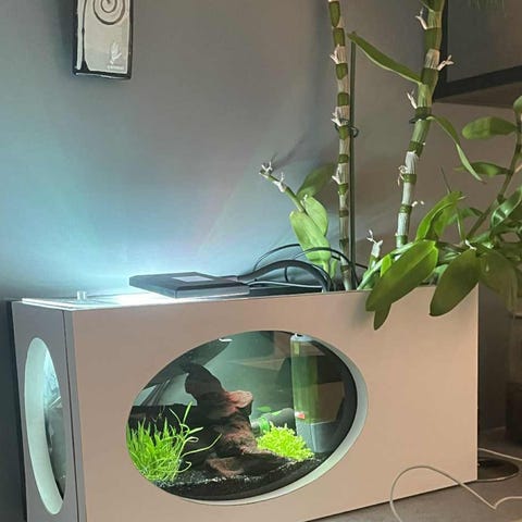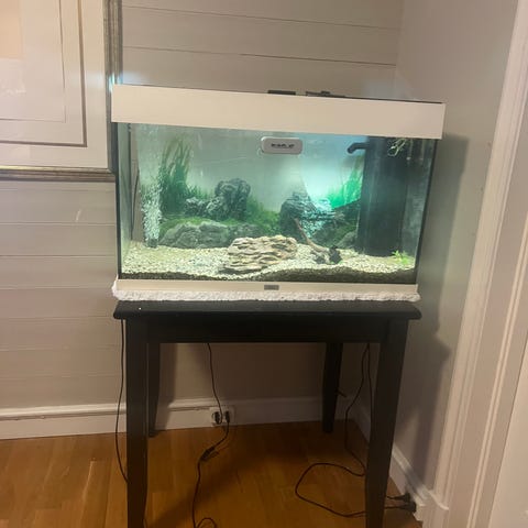 Seller akvariet med skap og lys, akvariet er i god stand. Selges uten sand.
