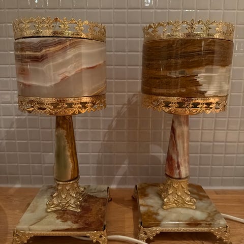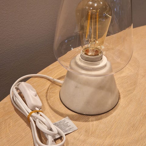 BORDLAMPE i MARMOR 50cm høy m/lyspære. Kr 400