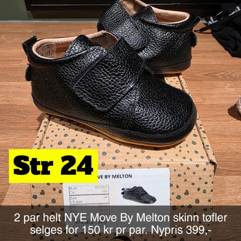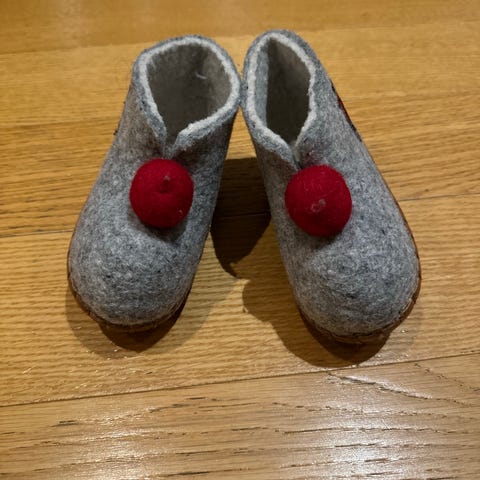 Pent og lite brukt skinn tøfler til barn str ca 23. 14cm under foten. Myke og gode