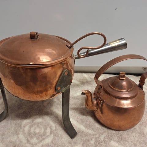 Diverse kobber. Kaffekjelen er gammel. Det andre er fra 80- tallet.