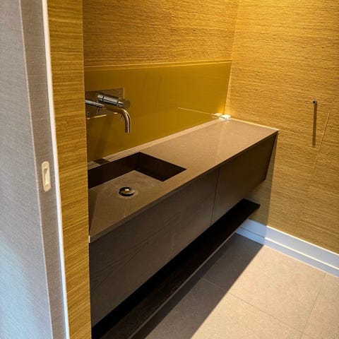 Benkeplaten er helt ny, og klargjort for underliming av vask, og servantkrane i benk.