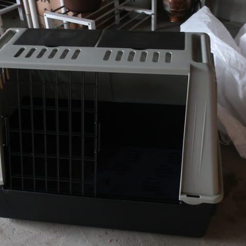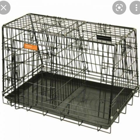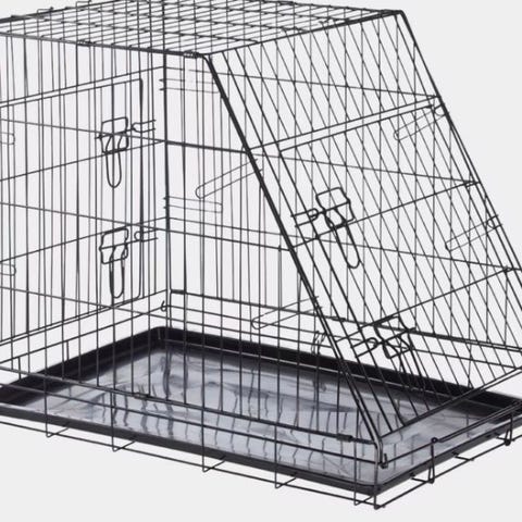 Laget av stoff med nettingvinduer for ventilasjon. Bærbar med håndtak for enkel transport. Eller fast i bil. Egnet til bruk for små og mellomstore kjæledyr. Kostet 999,- ny.