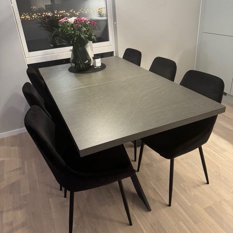 Selger et helt nytt spisebord i svart eik til redusert pris grunnet salg av bolig. Nypris er 8000,-