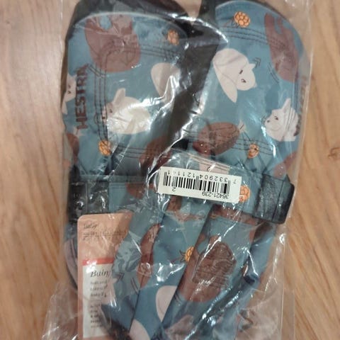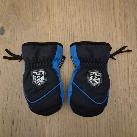 Lite brukte vintervotter til baby selges. I god stand, men en strikk som skal holde håndleddstroppen på plass har røket, se bilde. Påvirker ikke bruken.