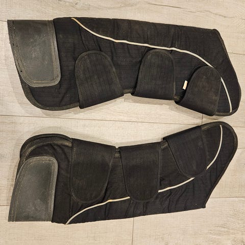 Sett med fire belegg bestående av to M og to L. Med varierende bruksmerker, men mye godt bruk igjen.