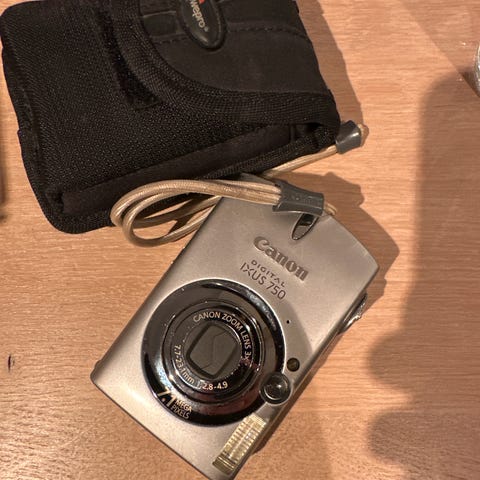 Canon Digital IXUS 400 Digitalkamera med kompakt design. Kameraet har en skjerm på baksiden for visning av bilder og navigering i menyer. Utstyrt med standard funksjoner for digital fotografering og batteri for bærbar bruk.