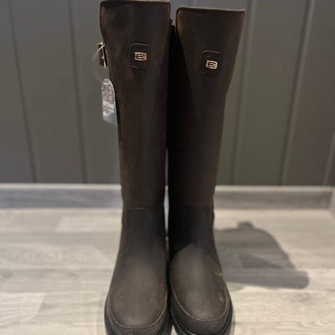Skinnboots i svart farge. Ankelhøye med elastiske sidepaneler for enkel på- og avkledning. Merke Hunter i størrelse 41