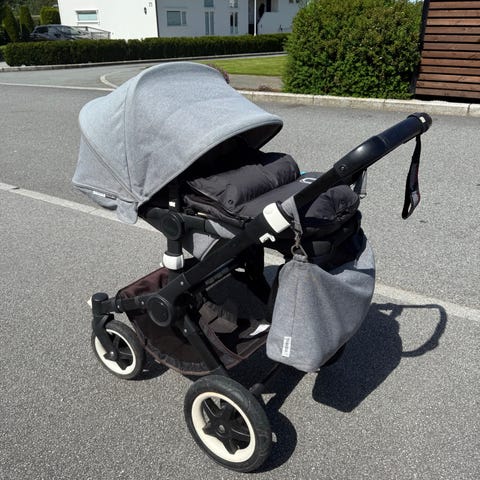 Hel og grei Bugaboo Buffalo med ligge/sittedel, ståbrett, stelleveske, regntrekk, myggnett og sommer/vinterpose selges. Noe solbleket samt slitasje på håndtak.