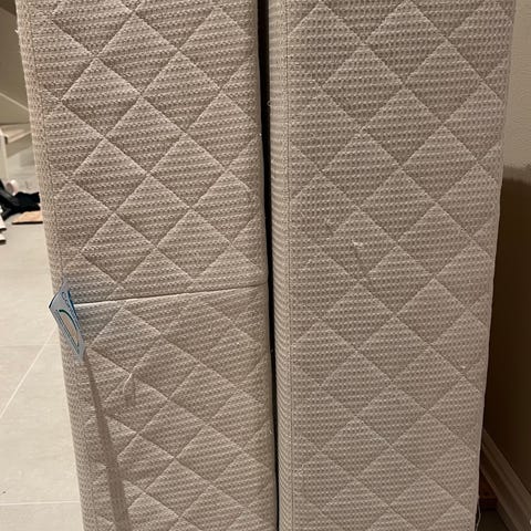 Senga er flekkfri men overmadrass har en flekk som er ikke forsøkt vasket