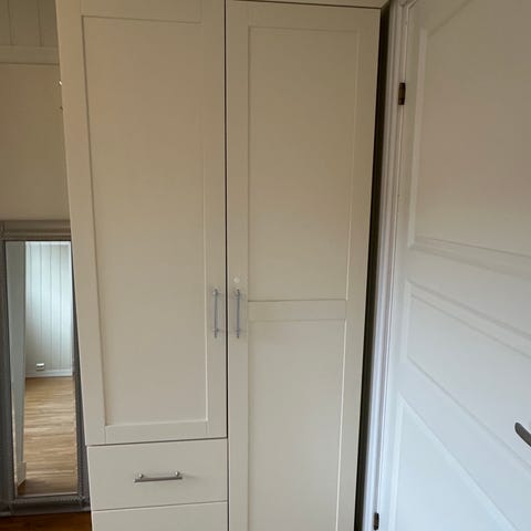 Garderobeskap selges. Skapdørene/frontene er malt i grått. Eldre modell skap. Knirker litt og kjenner litt motstand når man bruker skyvedørene, men kan fint brukes. Pris kan diskuteres ved hurtig avgjørelse og hentes raskt.