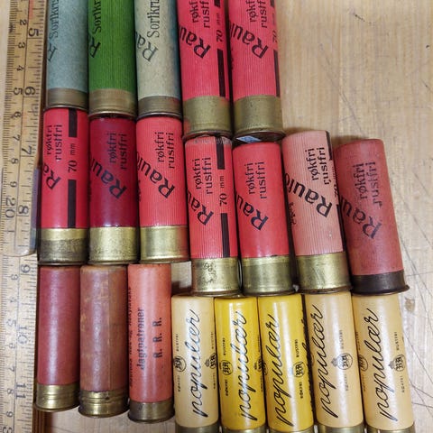 Nitedals Spesial 16-65 Nitedals Krudtværk. Rullekrympet. Komplett eske med strøkne patroner.