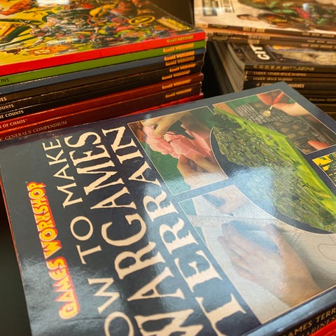 Selger regelbøker til 6th, 9th og 10th edition, samt codex til Space Marines og Necrons til 9th.