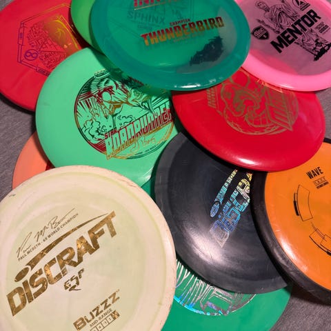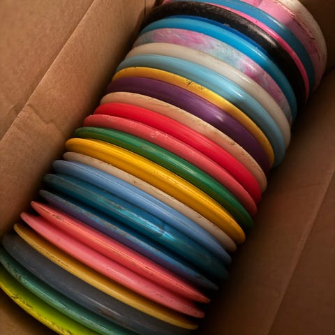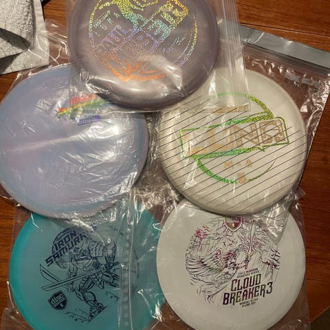 Alle diskene er lite brukt og i nær perfekt stand bortsett fra fairway driveren, som er ganske godt innspilt.