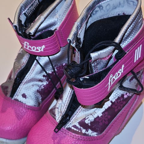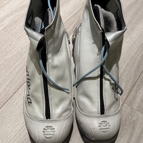 Varme og solide alpina skisko til barn selges. Disse skiene har vært med på mange skiturer, men kan fint gå noen kilometer til.