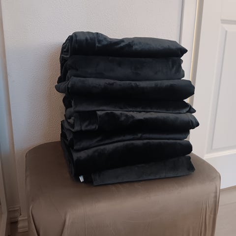 Helt nye, ubrukte lystette gardiner fra Kid. 140x220. Har 4 lengder. Følger med stenger og fester. Mørkgrå, nydelig farge