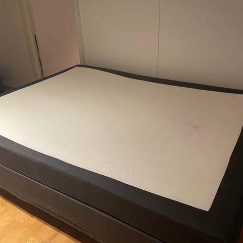 Pent brukt hytteseng 150x200. Rammemadrass 75x200x22 2 stk, 150x200x20 1 stk, overmadrass 150x200x4 1 stk.