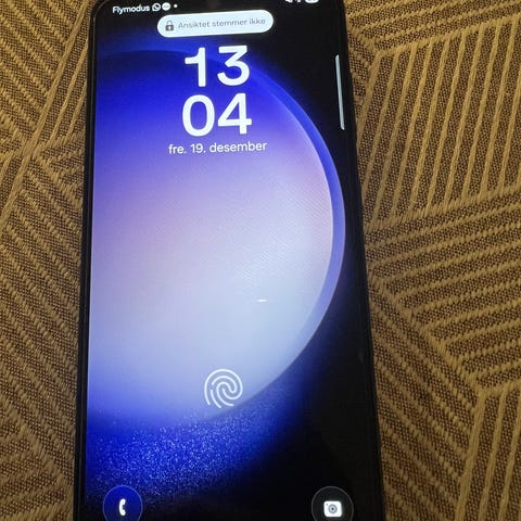 Sort Samsung Galaxy S23 Ultra mobiltelefon med 256 GB lagringskapasitet. Enheten har et kamerasystem med flere linser, en skjerm med kantdesign, og en USB-C-port for lading og dataoverføring. Telefonen har en matt bakside. Pent brukt. Par merker som vist siste bilde