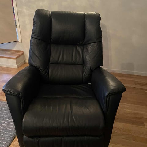 Brukt skinn recliner. Ok stand. Ingen feil eller mangler.