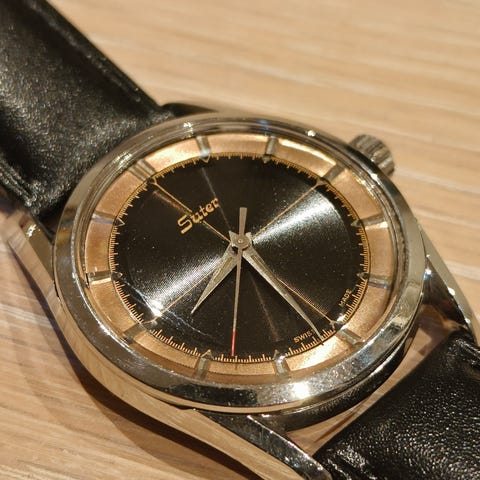 Sitter på en 18mm brun skinn reim, reimen er slitt.