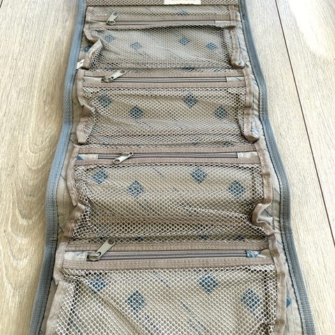 Toalettvesken er opphengbar med egen "kleshenger". Innvendig finner man flere rom (se bilder). Små rom i front som ypperlig atskillere for å differensiere innhold. Disse små rommene har borrelås som lukkemekanisme.