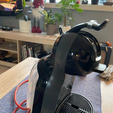 Nescafé Dolce Gusto kapsel maskin med en pose med div, kapsler har ikke sjekket dato på disse.