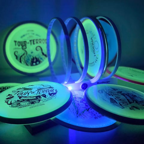 Søkeord: disc golf, frisbeegolf, frisbee, glow disc, glow rack, disc charger, disc golf utstyr, uv-lys, discgolf bag, disc golf tilbehør, frisbee lys, glow round.