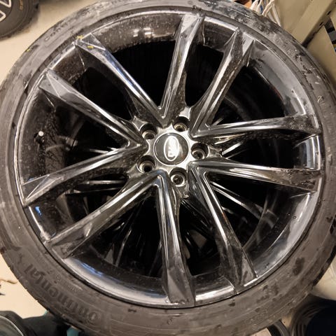 Har 4 stk felg, 19", Tesla 3 (2019) 2 stk har noe kast/urund. OK felger selges Kr 3000,- pr stk.