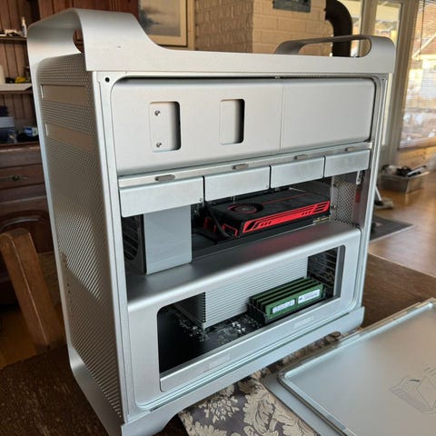 Kan flashes til 2010-2012 Mac Pro 5.1, noe som åpner for 128gb ram, Nvme og litt annet snack