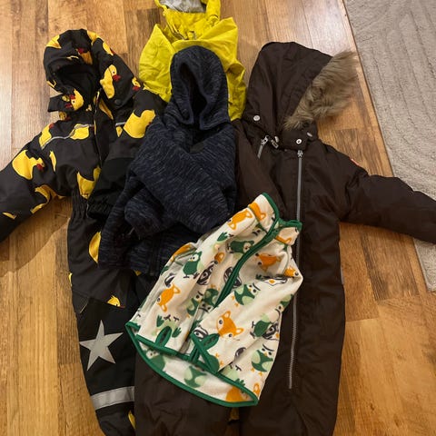 Utetøy str 80. Miniature regndress, 4 fleece dresser, reflex vår/høstjakke, newbie høst/vårjakke, en hals lue fra reflex, 2 vårluer.