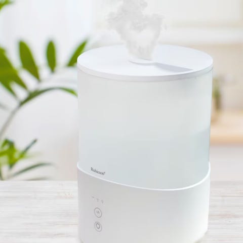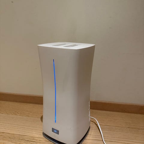Clas Ohlson luftfukter i hvit farge. Modellen har funksjoner for luftfukting med kontrollpanel på toppen for enkel betjening. Passer for bruk i hjem eller kontor for å forbedre luftkvaliteten.