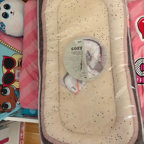 Yttermål på sengen er 69 x98 sammenskjøvet. Delen som er skjøvet inn er 90 cm lang.