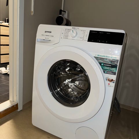Zen vaskemaskin med digitalt kontrollpanel og stor døråpning for enkel lasting og lossing. Maskinen har kapasitet på 10 kg, og er utformet for effektiv vask av klær.